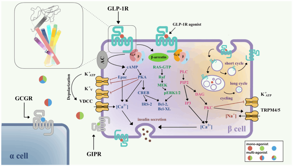 Multi-agonist peptides that combine GLP-1 with GIP and/or glucagon signaling further extend this concept, potentially amplifying the entero-mitochondrial message: “Adjust energy production, clear excess fuel, and adapt to the current nutrient environment.”